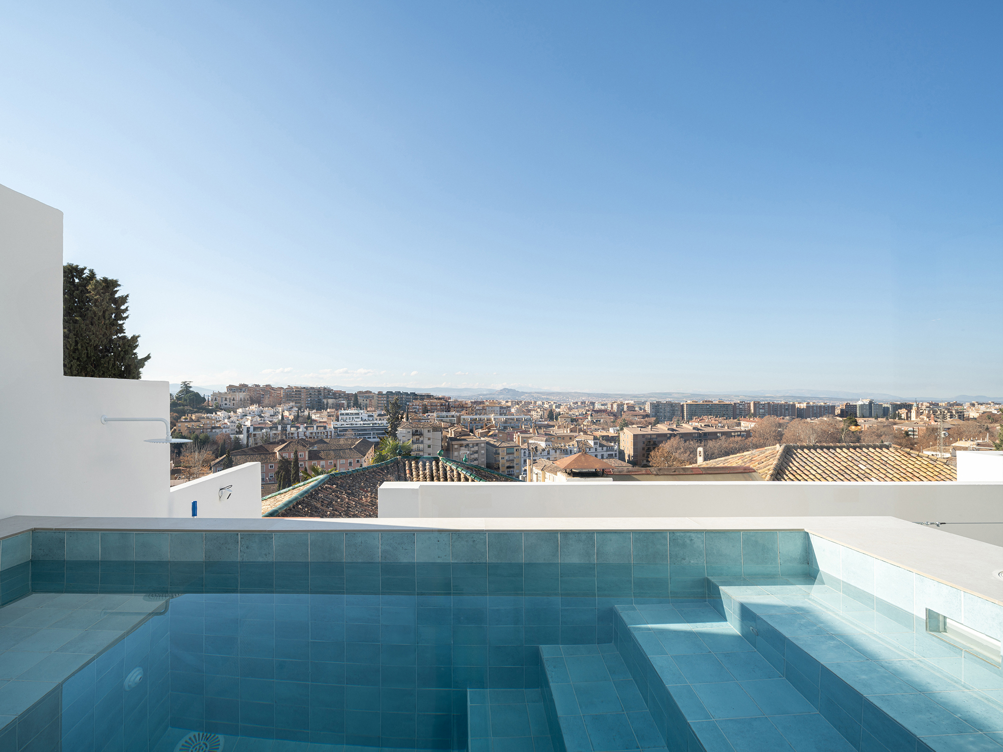This is your Granada Airbnb oasis in Granada downtown where luxury meets stunning beauty. In the midst of these beautiful streets in this historic Spanish city, we invite you to discover an Airbnb like no other. Be ready to be captivated by modern design, breathtaking city sights and a private swimming pool that guarantees a tranquil escape from everything else. Stepping out onto the large terrace will hit your senses with the sweet smell of blooming flowers and a warm Mediterranean breeze gently brushing against your body. It is here in this luxurious haven where every second becomes an unforgettable memory and all pleasures can only be compared with their incredible magnificence. Welcome to a little piece of heaven in Granada – a spot where dreams come true and one fully immerses him or herself into local culture.